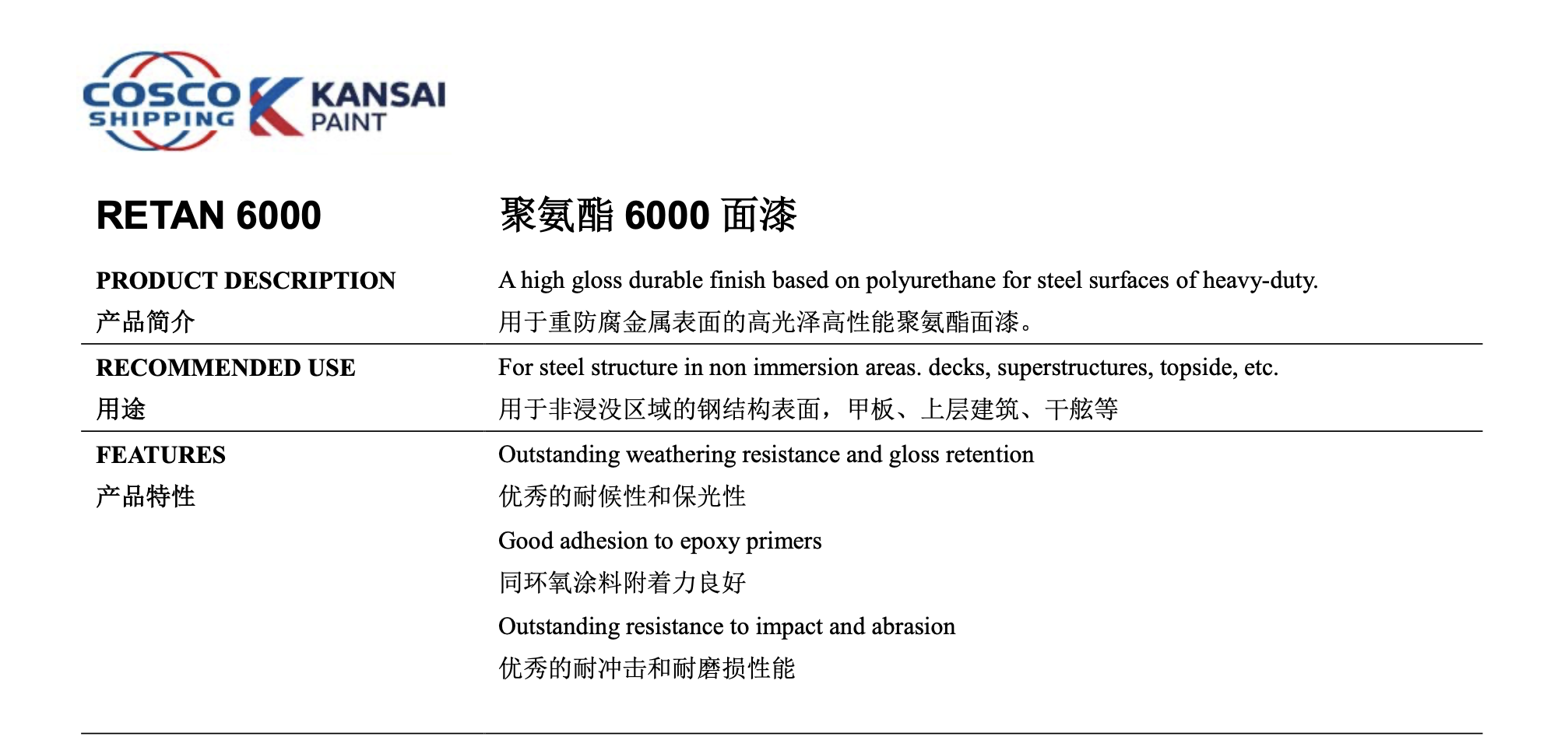 优秀的耐候性和保光性 同环氧涂料附着力良好 优秀的耐冲击和耐磨损性能